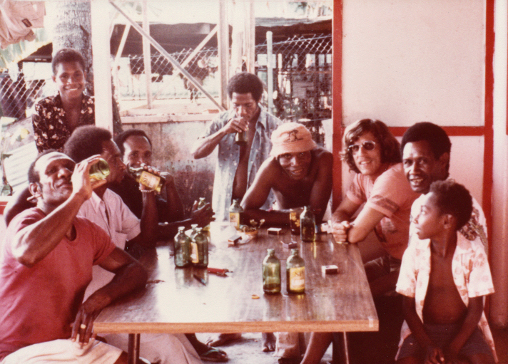 MV Sago boat crew at Voco Point in 1976. Panett (AK, Alisa Kopu) is the one in the hat facing the camera.
