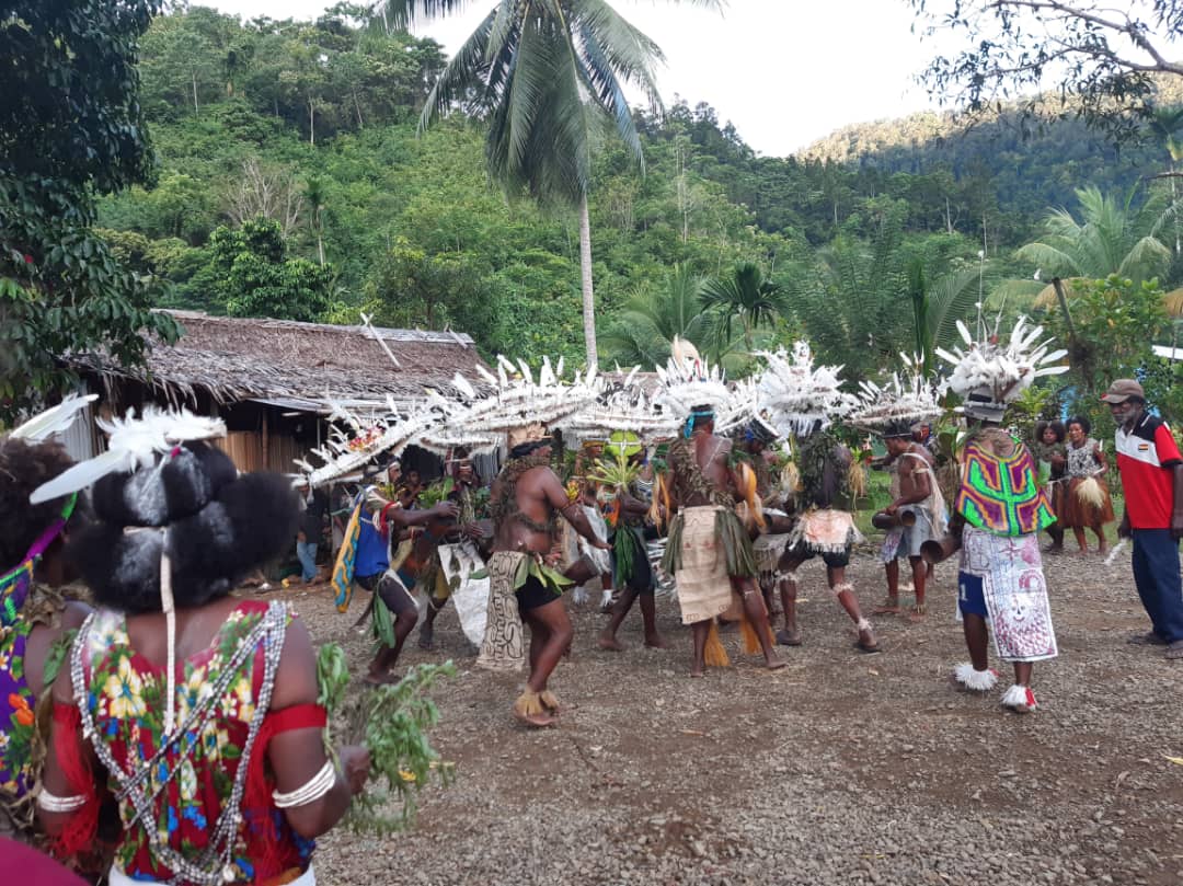 Church dedication singsing by Paiawa in feather headdress, July 2020
